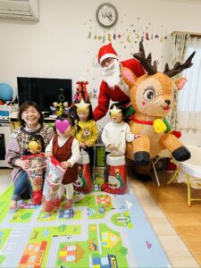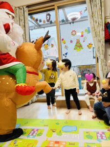 クリスマスはトナカイに乗ってサンタさんが登場すると、固まる子・ニコニコで迎える子・泣いちゃう子、色々なリアクションをしていましたが、