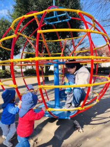 12月はキラキラしたクリスマスの飾りつけやお歌をうたい、目でも耳でも楽しむことができたね!
