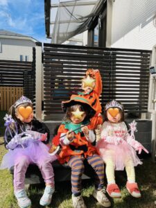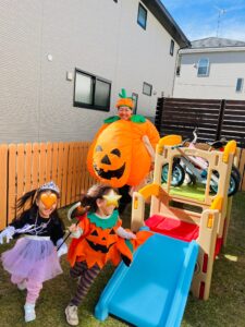 ハロウィンは「トリックオアトリート」とたくさん練習して、かわいい仮装をしてなりきるみんな‼保育者からお菓子をもらい