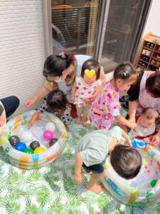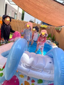 8月・9月はお庭でプールや親水施設で水遊びをたくさんしました‼